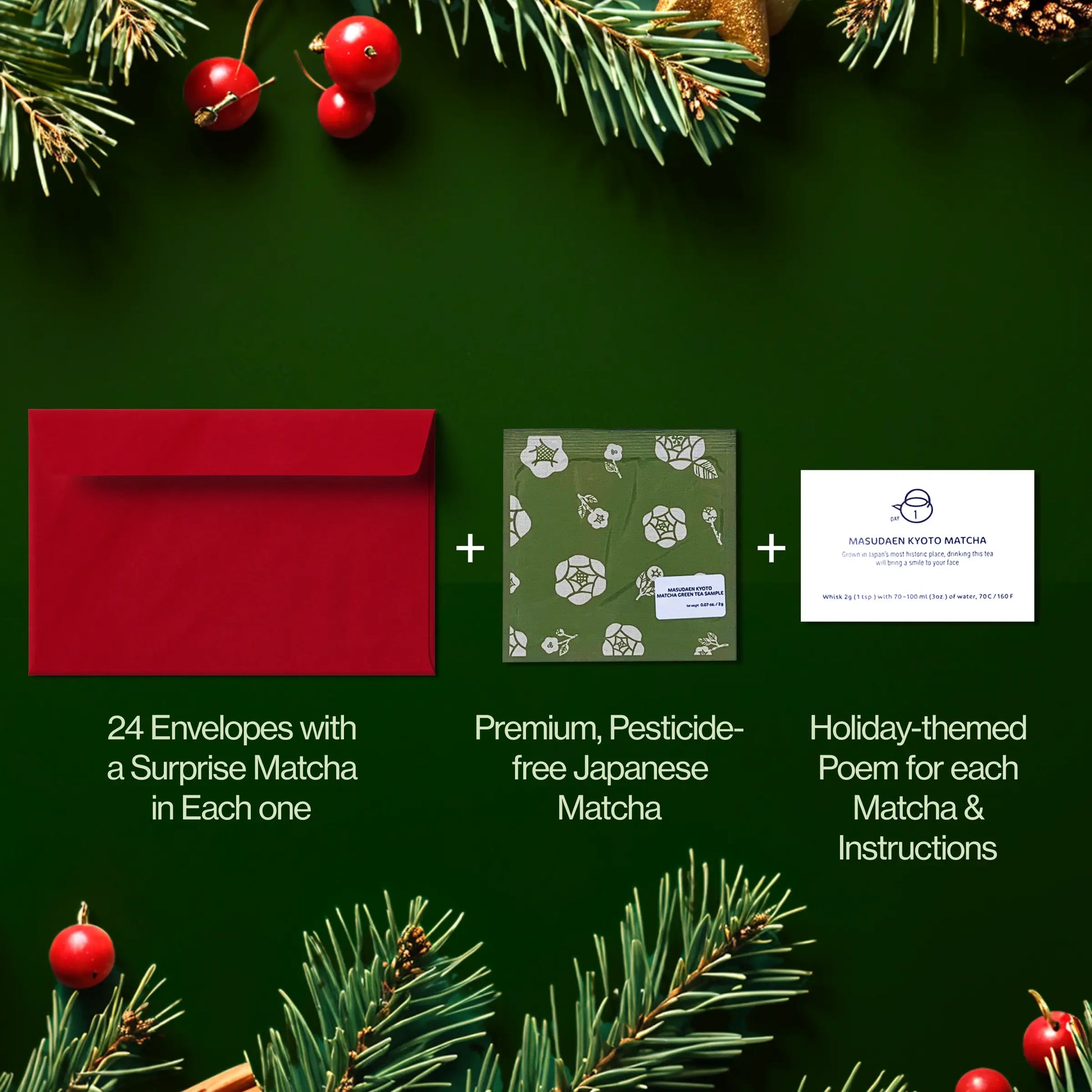 Nasz kalendarz adwentowy z matchą oferuje bezpestycydową matchę ceremonialną najwyższej jakości, pochodzącą z małych rodzinnych gospodarstw w Japonii, co gwarantuje niezrównaną jakość i autentyczność.